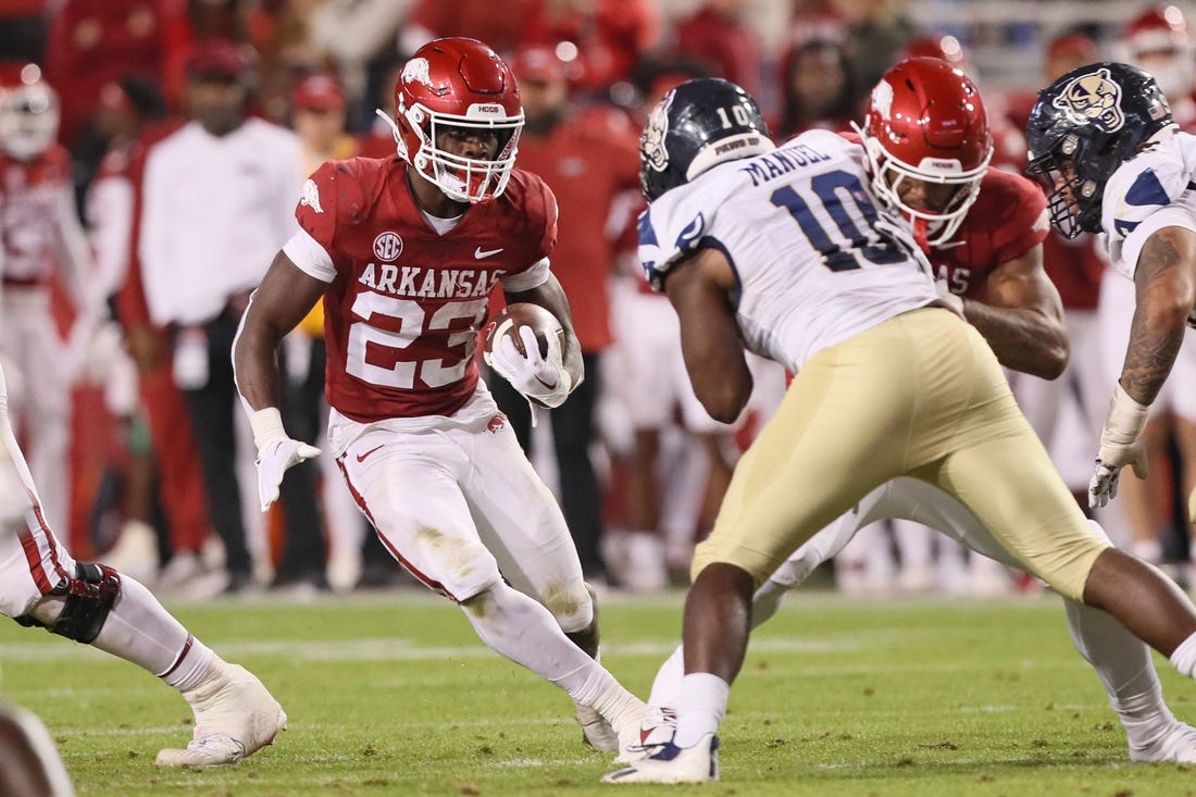 Former Arkansas running back Isaiah Augustave, who rushed for a combined 181 yards in his last two games for the Razorbacks, announced on social media Thursday afternoon that he is transferring to Colorado.