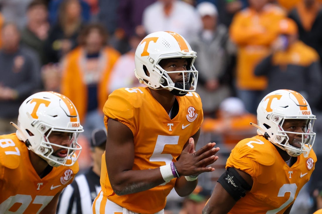 Jalin Hyatt had seven receptions for 146 yards and a touchdown and Bru McCoy caught nine passes for 111 yards as Tennessee scored 40 or more points for the seventh time this season.