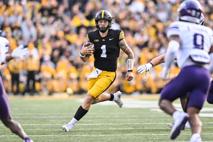 “I thought he did a really good job out there, played with poise, was productive,” Iowa coach Kirk Ferentz said Tuesday. “He’s practicing well so far this week, so off to a good start.”