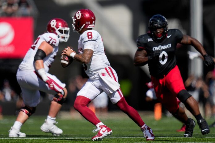 Oklahoma is coming off a 20-6 victory at Cincinnati last Saturday. Sooners quarterback Dillon Gabriel completed 26 of 38 passes for 322 yards and a touchdown, with no interceptions.