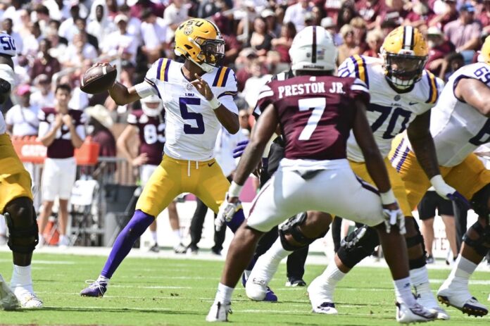 Daniels completed 30 of 34 passes for 361 yards without an interception and rushed 15 times for 64 yards for the Tigers (2-1), who had 530 total yards. Daniels’ 88.2 completion percentage set an LSU single-game record for a minimum of 25 passes.