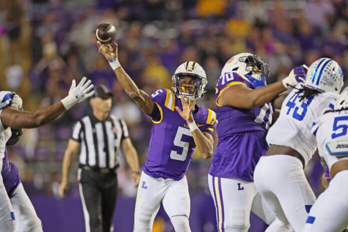“I truly think he’s the best player in the country,” LSU head coach Brian Kelly said. “What he’s doing is so different in terms of what I’ve seen throughout my career in terms of pushing the ball down the field, the accuracy in terms of dropping balls into tight coverages, running the football and the assertiveness.