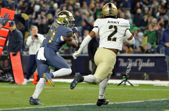 Price increased the Fighting Irish’s lead to 42-7 with a 10-yard rushing touchdown with 45 seconds left in the third quarter. He broke a tackle, evaded another defender and burst past the goal line for his second rushing score of the game and his sixth of the season.