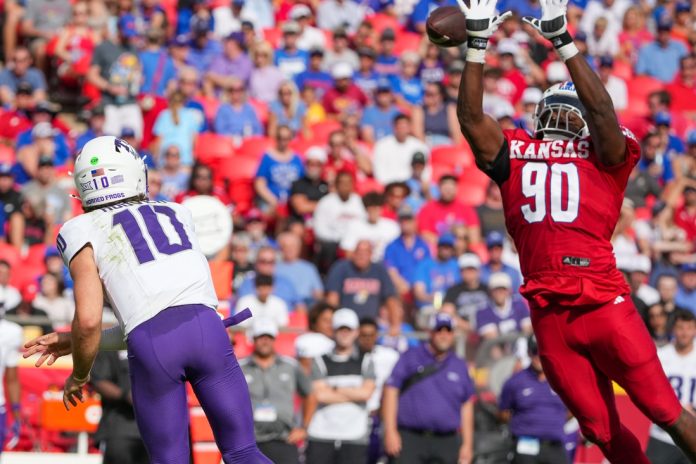 The Kansas defense notched the first of three TCU (3-2, 1-1 Big 12) turnovers when Cobee Bryant forced a Cam Cook fumble that was recovered by Dylan Wudke on the game’s first possession.