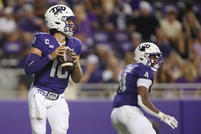 Twelve different receivers caught passes in the win, led by Savion Williams’ six receptions for 69 yards. Cook rushed for 58 yards on 13 carries to pace TCU as the Horned Frogs racked up a 425-127 edge in total yardage.