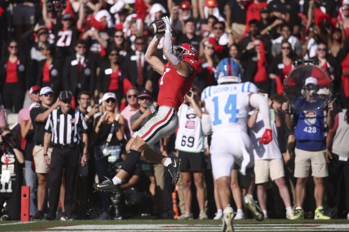 NCAAF: Lawson Luckie hauls in 3 TDs, No. 9 Georgia upsets No. 5 Ole Miss