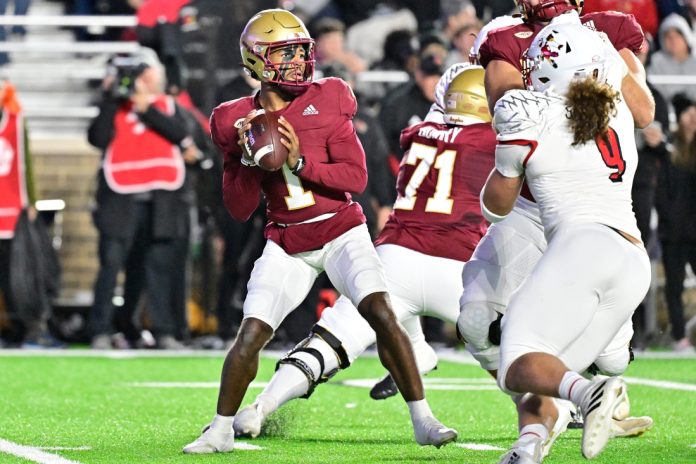 An interception by Boston College’s Quintavious Hutchins set up the game’s opening score. On fourth-and-1, Castellanos found Morales on a play-action pass to the left, scoring a 54-yard touchdown midway through the first quarter.