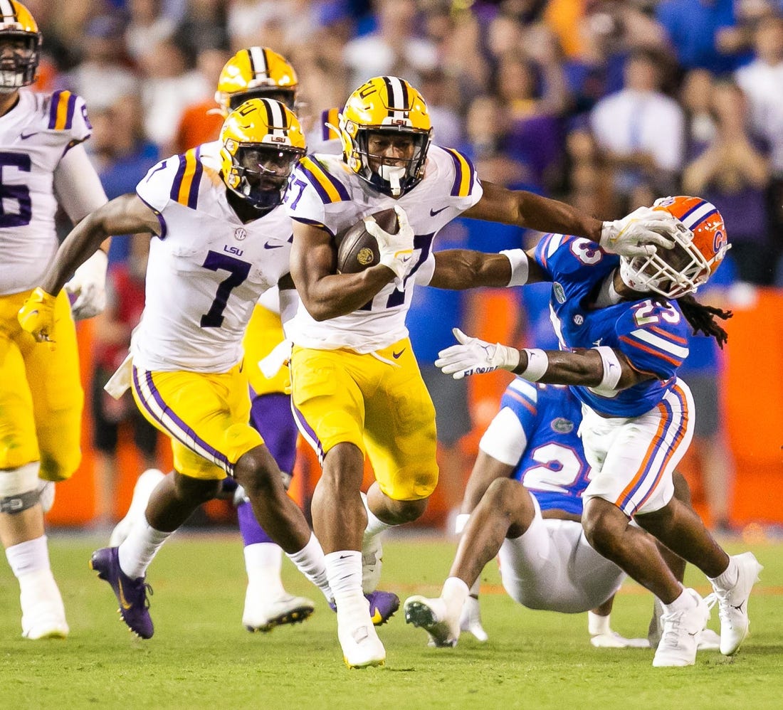 LSU gave up a 51-yard touchdown pass on the second play of the contest and a 39-yard touchdown run later in the first quarter. An 81-yard TD scramble by Florida quarterback Anthony Richardson on the first play of the fourth quarter helped cut a 42-21 deficit to 14 points, and the Gators brought it to within seven before the Tigers kicked a late field goal.