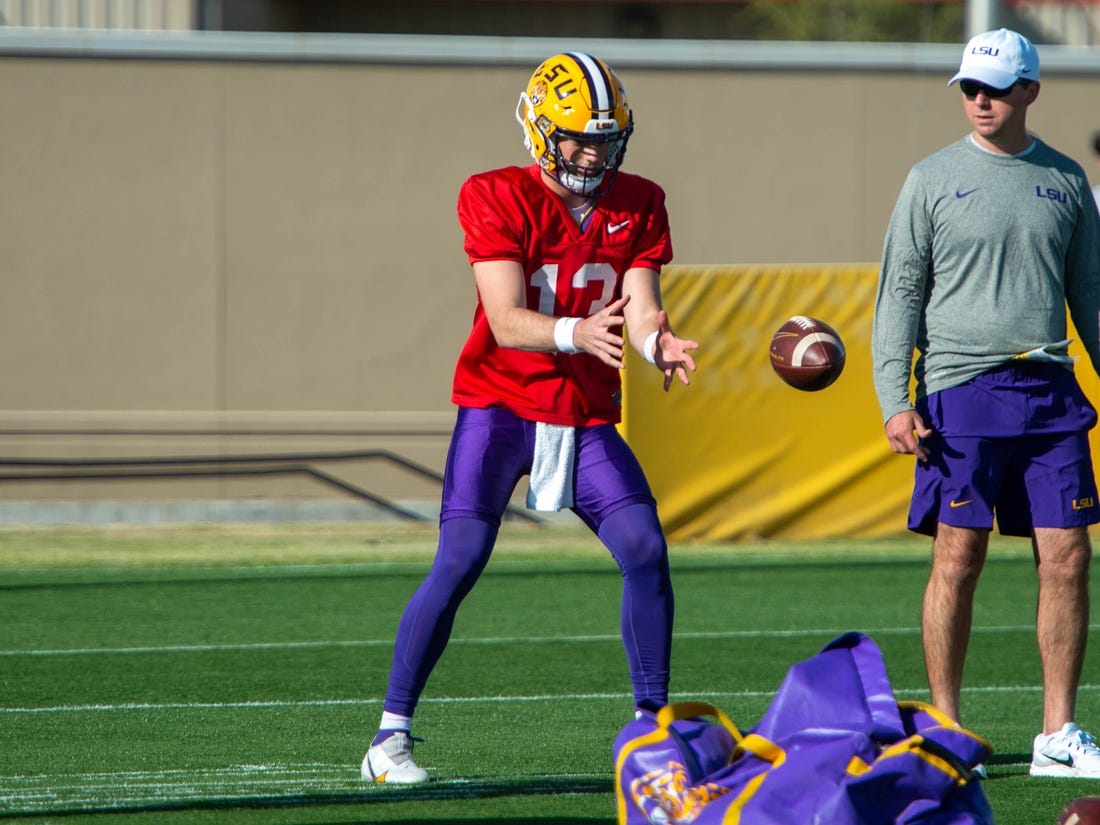 Garrett Nussmeier, one of three quarterbacks vying for the starting job at LSU, missed the Tigers’ first scrimmage on Thursday because of a minor ankle injury, The Athletic reported.