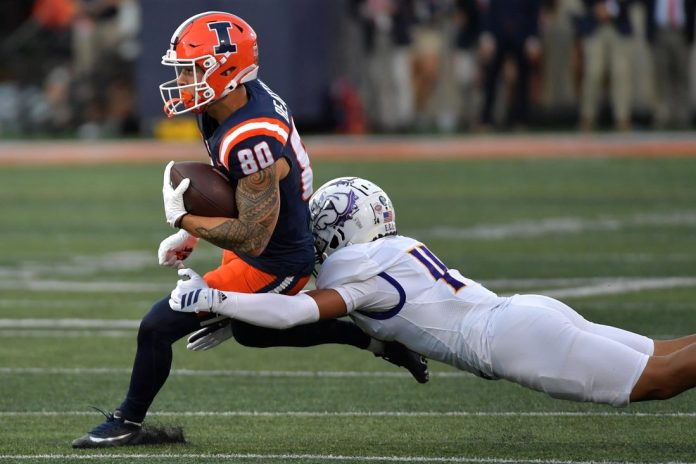 Altmyer completed 17 of 21 passes for the Illini, who played with an AP Top 25 ranking in their opener for the first time since 2008. Aidan Laughery rushed for 101 yards and two scores on nine carries, Justin Bowick snagged two touchdown passes and Hank Beatty caught five passes for 108 yards while delivering Illinois’ first punt return for a score since 2013.