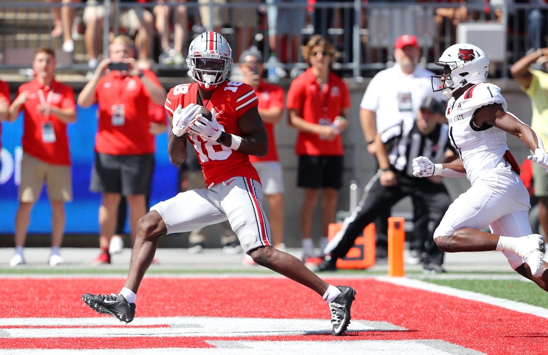 Ohio State was without standout receiver Jaxon Smith-Njigba, who sustained a leg injury in the season opener against Notre Dame, but Harrison made up for his loss with a pair of 42-yard TDs in the first half to shake off the Red Wolves, who were 44-point underdogs.