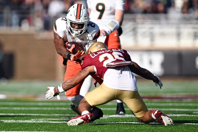 Andres Borregales’ 26-yard field goal with 8:36 remaining extended the Hurricane lead.