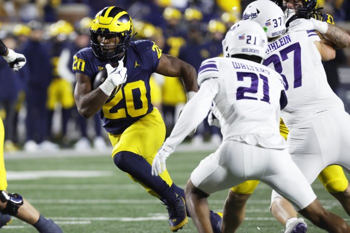 Kalel Mullings rushed for three touchdowns and Michigan scored 40 straight in a 50-6 victory over visiting Northwestern on Saturday afternoon in Ann Arbor, Mich.