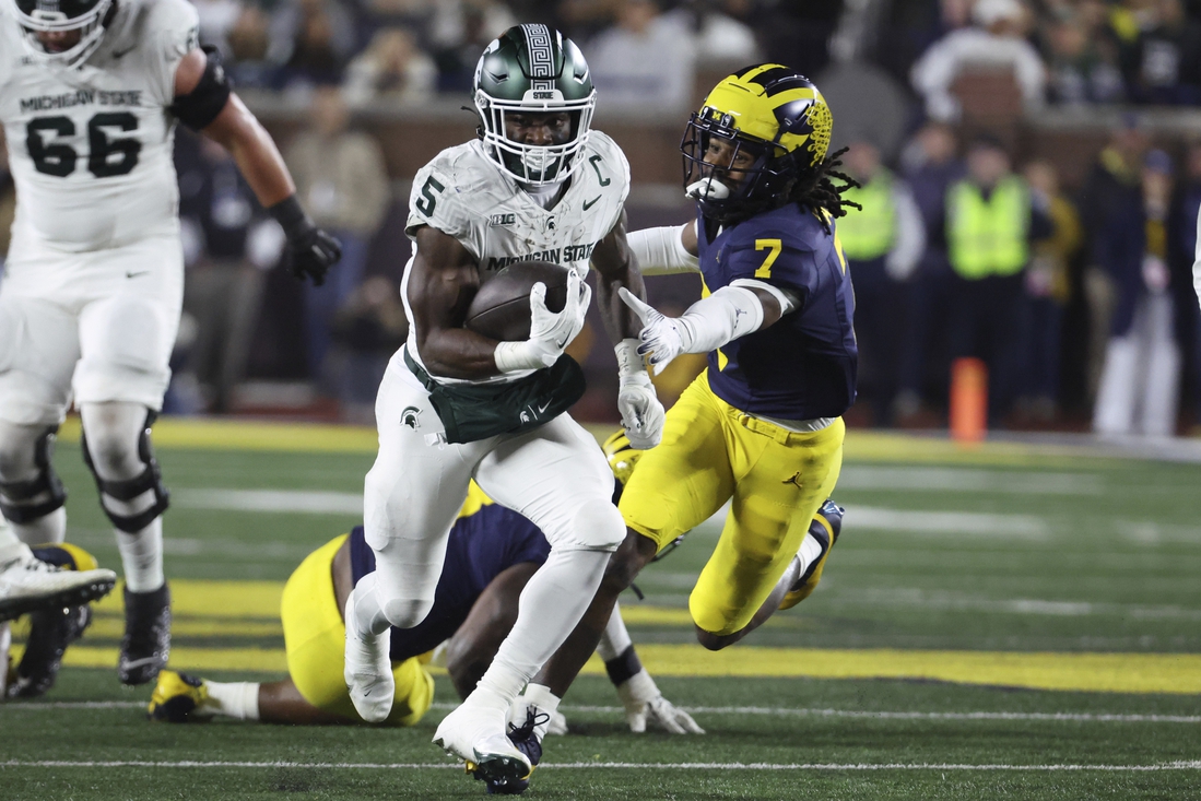 The Spartans’ running trio of Kay’ron Lynch-Adams, Nate Carter and quarterback Aidan Chiles has combined for 1,142 yards and eight touchdowns.
