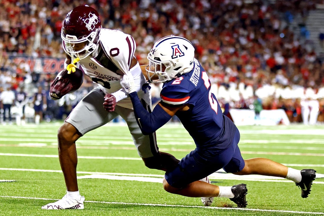 Mississippi State (2-0) twice stopped Arizona on fourth down in Bulldogs’ territory in the fourth quarter while protecting a 15-point lead. MSU sealed the victory with a 2-yard touchdown pass from Rogers to Caleb Ducking with 3:18 to go.