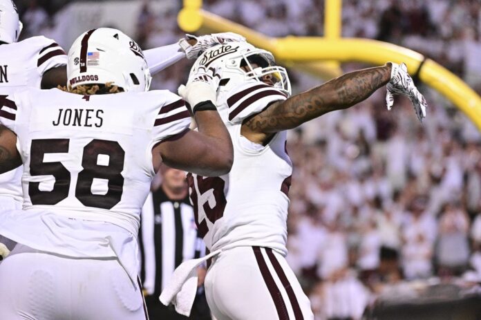 Pittman put Mississippi State (2-0) up in overtime when he took a quick pass behind the line of scrimmage, broke a tackle and raced into the end zone. Arizona (1-1), which overcame five turnovers in regulation, faced fourth-and-10 at the 25 when quarterback Jayden de Laura was chased backward before taking off on a sprint downfield.