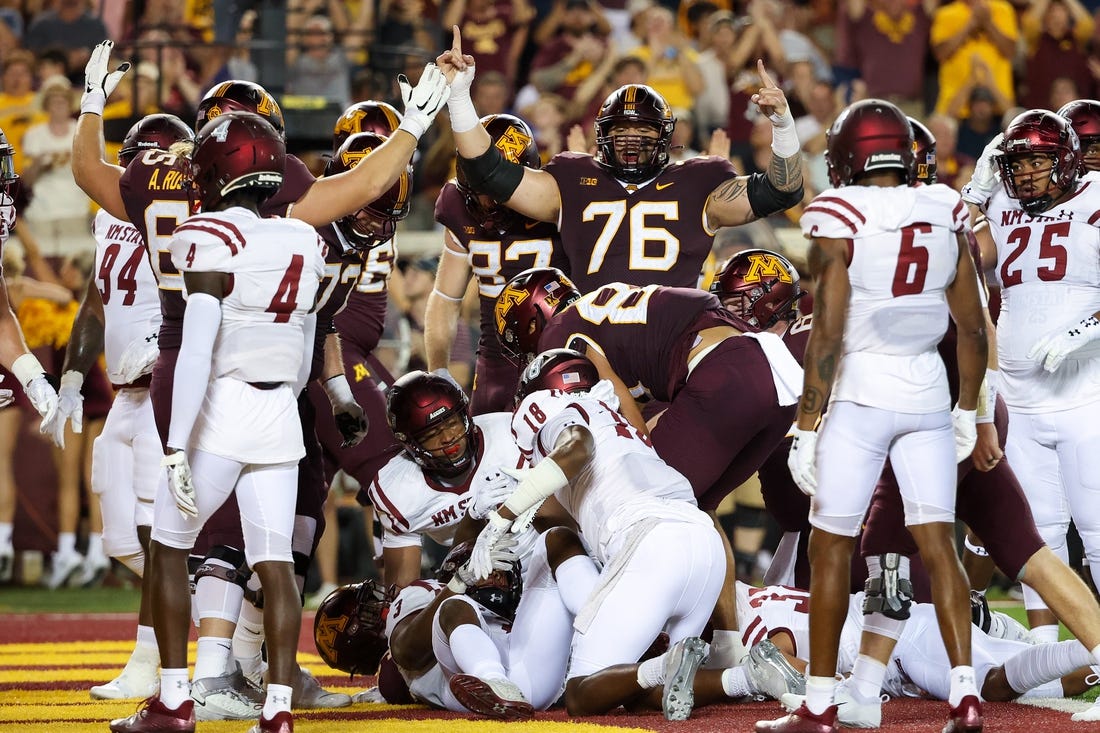 The Aggies went three-and-out on four of their eight possessions, and they had six first downs to 31 for Minnesota. They didn’t make it into Gophers territory until early in the fourth quarter.