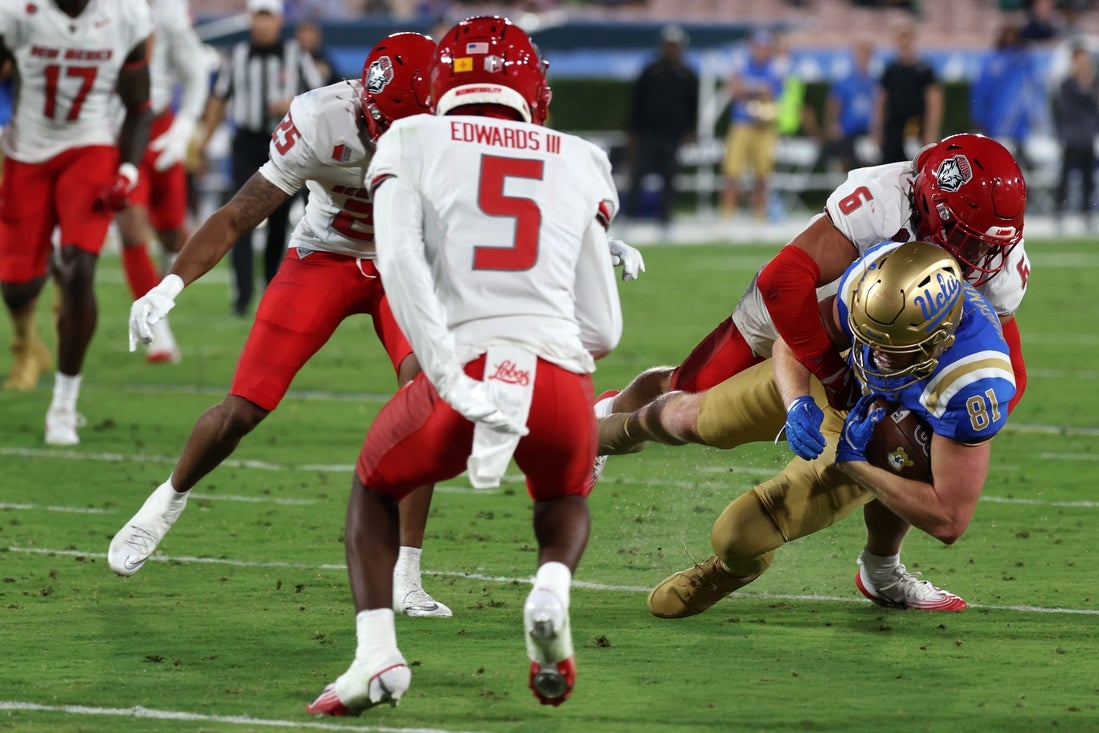 Bankston’s clinching score came after UCLA coach DeShaun Foster accepted a penalty on New Mexico for illegal motion. Instead of fourth-and-2, the Lobos (2-1) faced a third-and-11 on which quarterback Jack Layne dumped a short pass to Bankston.