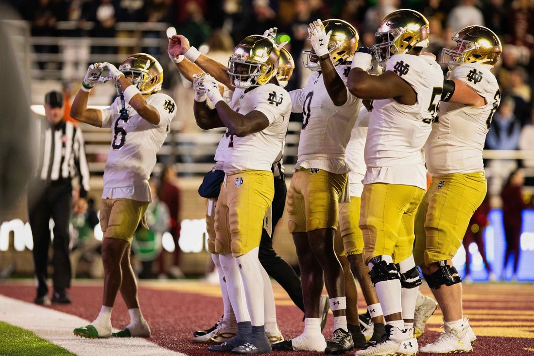 The Notre Dame defense racked up three picks and 12 tackles for loss that included five sacks. Linebacker Drayk Bowen totaled a career-high 14 stops and added two tackles for loss with one sack.