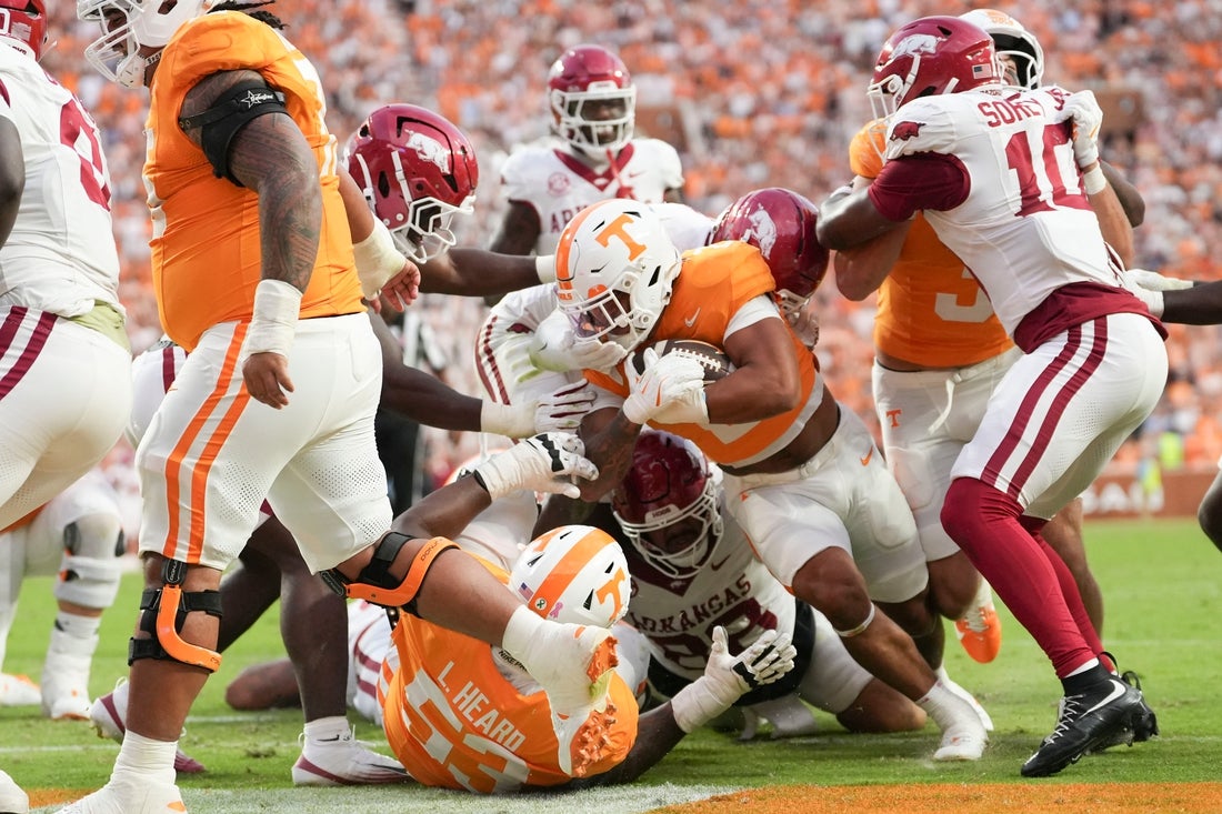 Peyton Lewis rushed for two touchdowns, and the No. 12 Tennessee Volunteers broke a halftime tie to beat Arkansas 34-31 in Bobby Petrino’s return as interim head coach of the Razorbacks on Saturday afternoon in Knoxville, Tenn.