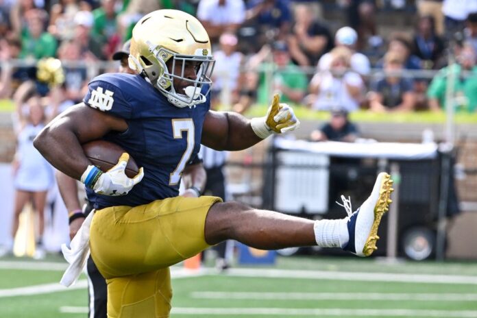 Notre Dame (2-0) amassed 557 total yards, including 221 on the ground. Audric Estime had 116 rushing yards on 13 carries and a touchdown.