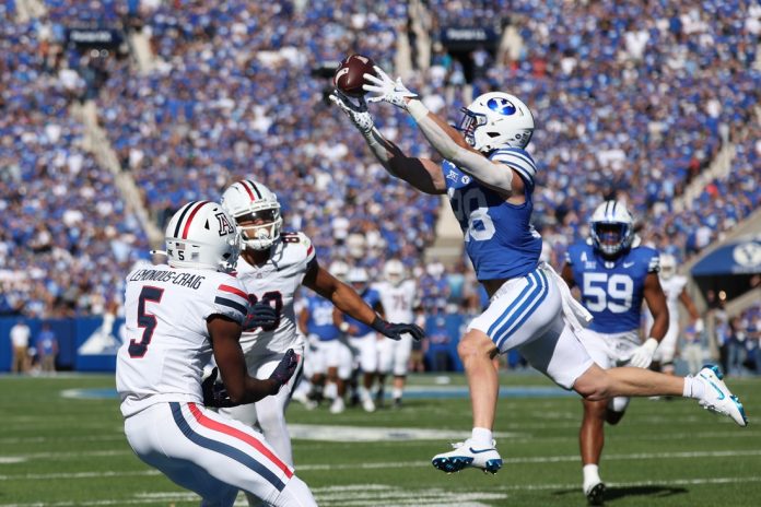 BYU (6-0, 3-0 Big 12) scored on the next play from the Arizona 9-yard line on Jake Retzlaff’s pass to Chase Roberts to increase the lead to 21-7.