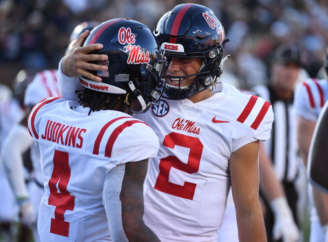 Freshman Quinshon Judkins is ninth in rushing yards (1,171) and fifth in rushing TDs (15) in FBS play. The latter number set a school record for a single season, eclipsing the 14 of Brandon Bolden (2010), Deuce McAllister (2000), Archie Manning (1969) and Kayo Dottley (1949).