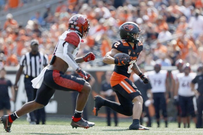 Uiagalelei gave the Beavers some breathing room on a 1-yard rushing touchdown with 7:40 left in the third quarter. That increased Oregon State’s lead to 19-3.