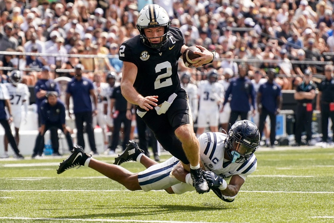Barnes, who threw to Pegan for a 9-yard scoring play at the 20-second mark, matched Pavia with three first-half TD tosses. Brock Taylor’s 46-yard field goal on the last play of the half gave Vanderbilt a 31-21 lead.