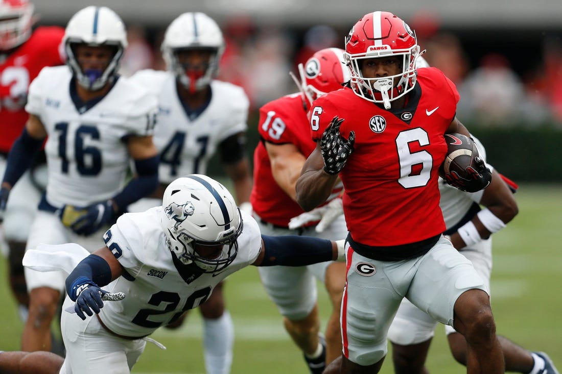 Kenny McIntosh had five receptions for 61 yards while tight end Brock Bowers caught three passes for 57 yards. Kendall Milton rushed for 85 yards on 10 carries and Daijun Edwards added 23 yards on six attempts.
