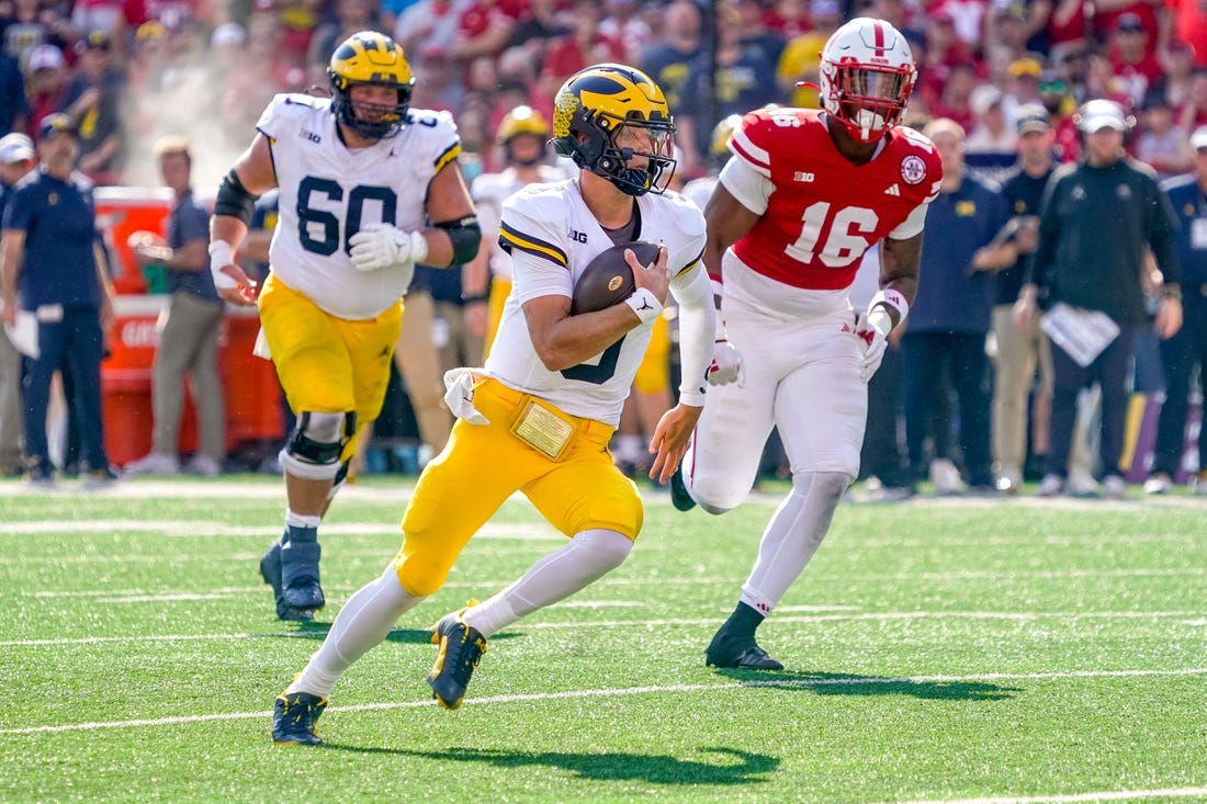 The Cornhuskers missed a field-goal attempt early in the second half. Michigan took over at its own 22 and methodically drove down the field with Corum carrying the ball seven times. He scored from a yard out to make it 35-0.