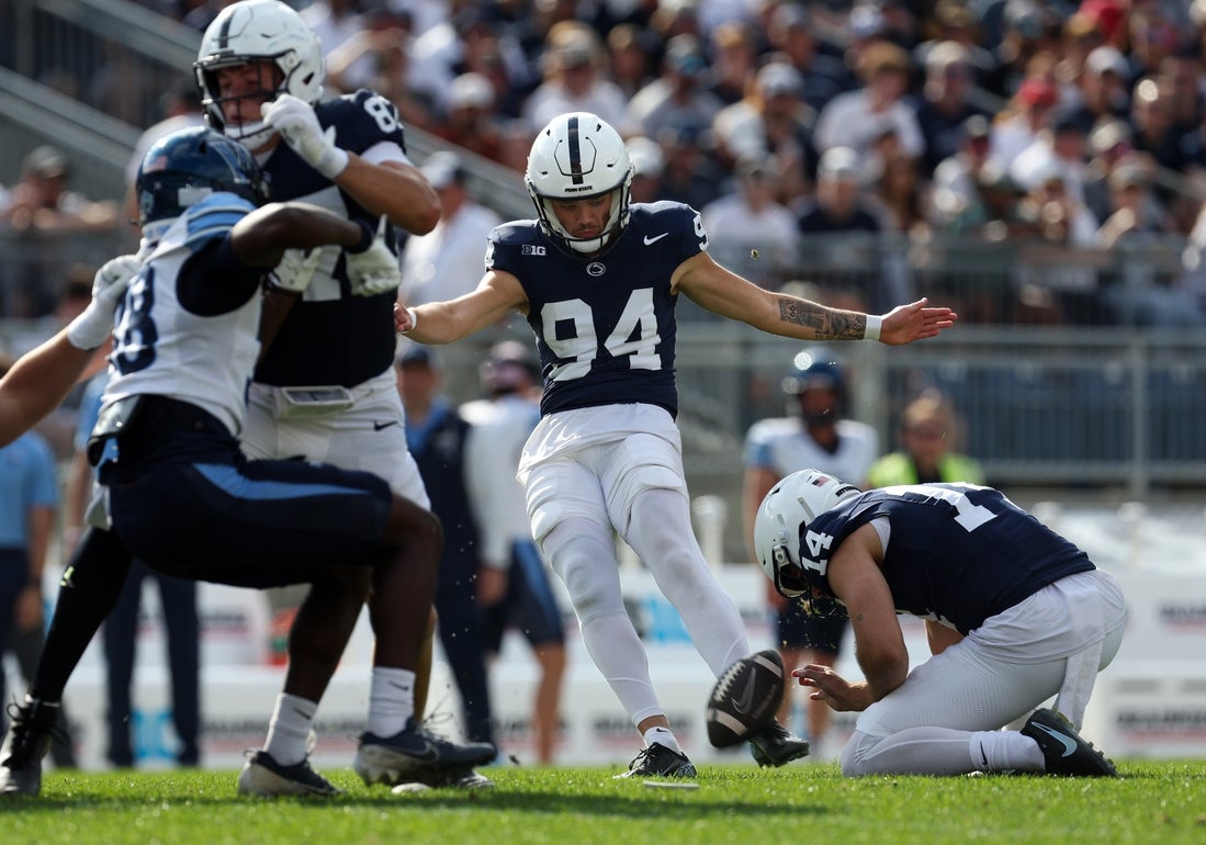 On the ensuing possession, Villanova attempted a field goal of its own, but Jack Barnum’s 47-yarder was wide left. Seven plays later, Penn State found the end zone on Allar’s 23-yard TD pass to Pena – a laser between two defenders – to make it 21-0 after a two-point conversion.