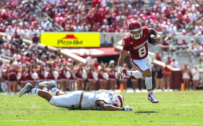 The Sooners’ offense was dominant from the start, needing just five plays to drive 70 yards for a touchdown to start the game and finding the end zone on each of their first five drives.