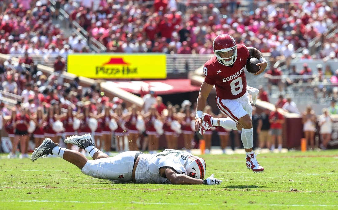 Sooners freshman backup quarterback Jackson Arnold, who took over for Gabriel after halftime, was 11 of 11 for 114 yards and a score. He also ran for another touchdown in his collegiate debut as Oklahoma finished 30 of 33 through the air.