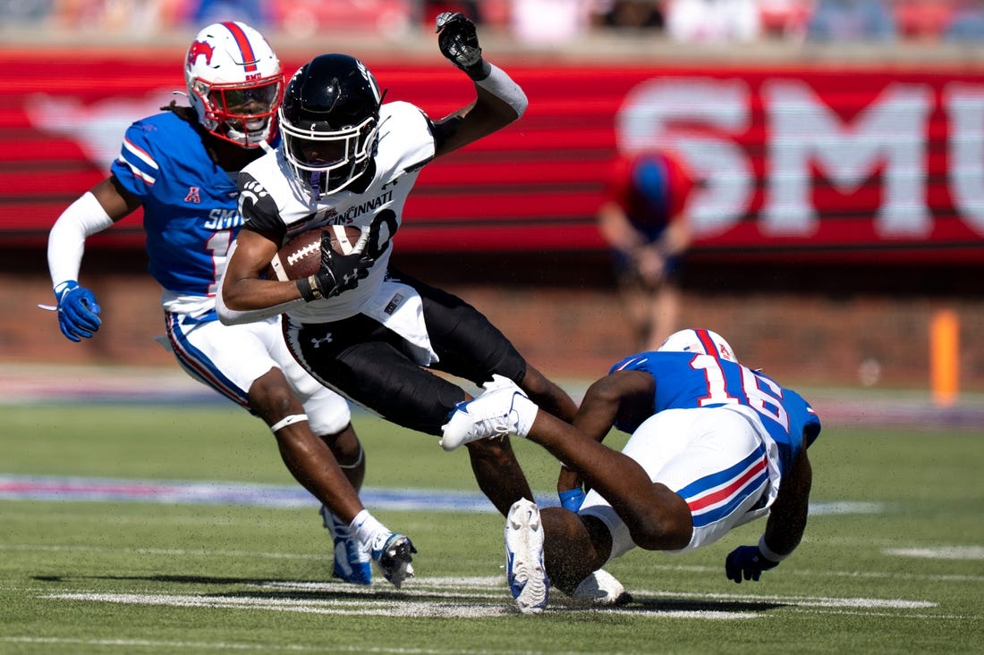 Cincinnati quarterback Ben Bryant completed 18 of 35 passes for 200 yards, and Jadon Thompson hauled in four passes for 69 yards. The Bearcats outgained the Mustangs 379-259.