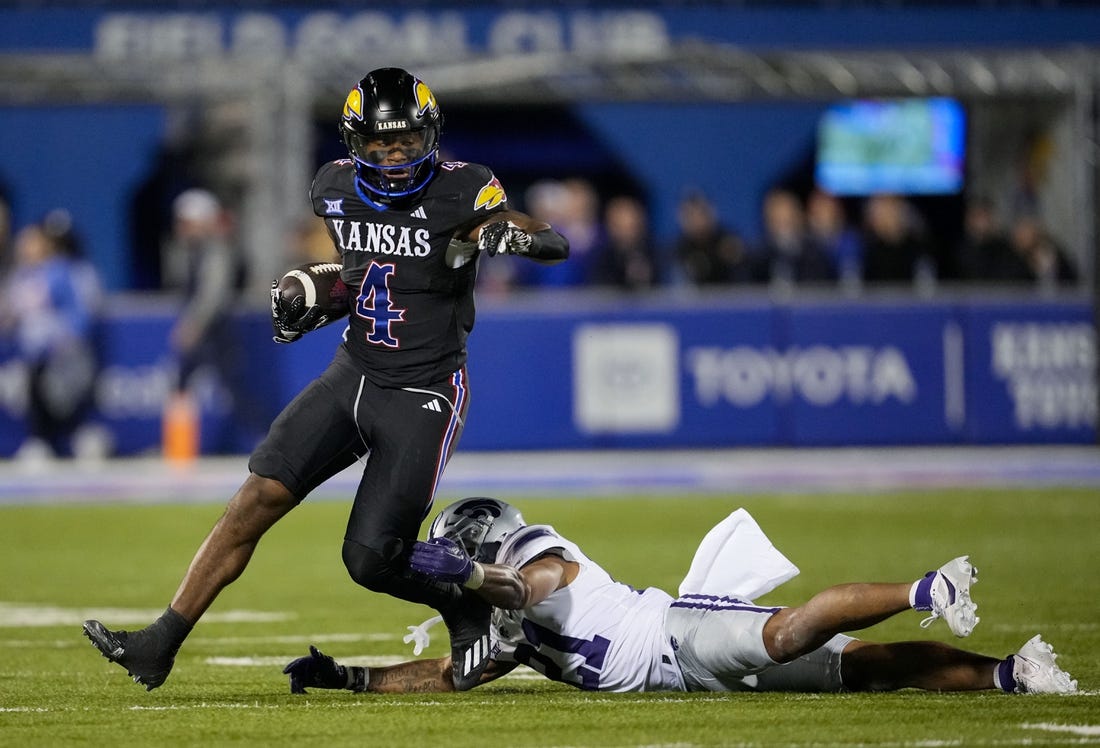 Freshman Cole Ballard, who was making his first career start for Kansas (7-4, 4-4), completed 11 of 16 passes for 162 yards with a touchdown and two interceptions. Devin Neal, a native of Lawrence, Kan., ran for 138 yards and three touchdowns on 18 carries.