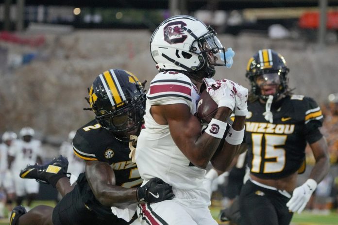 South Carolina answered with a 49-yard touchdown pass to Jacobs with 11:26 left in the half. However, Missouri went back ahead at 9-7 on Meyer’s 23-yard field with 5:54 remaining.