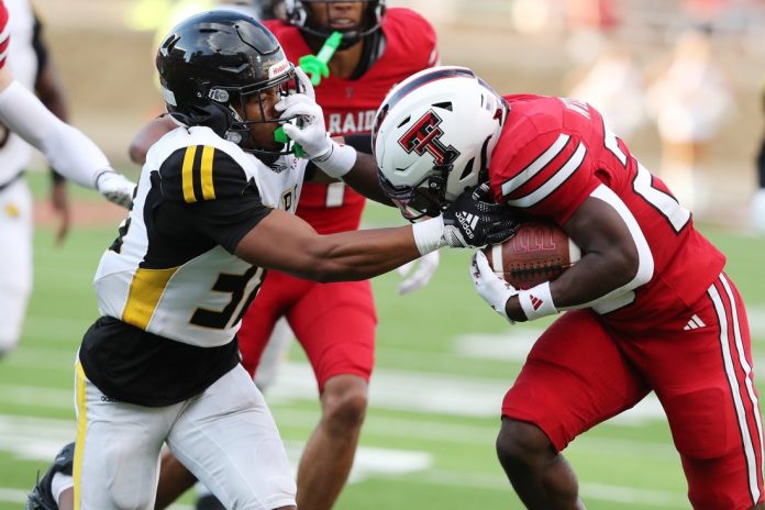 Cameron Dickey added 90 yards and a score on 12 rushes for the Red Raiders, while Terrance Carter Jr. caught two touchdown passes. A total of 12 players caught at least one pass.