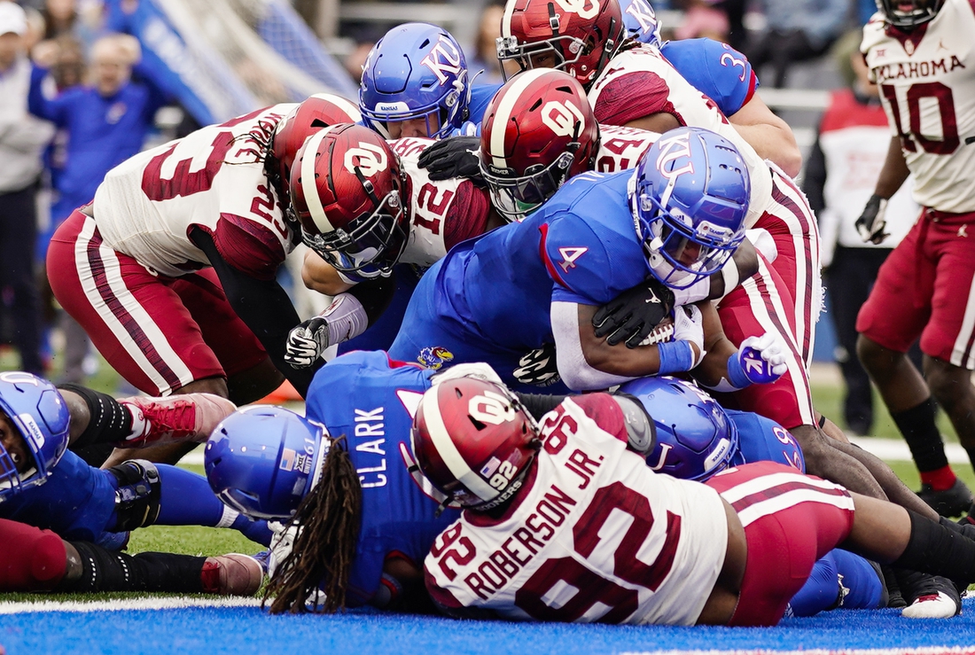 Then Oklahoma’s Justin Broiles recovered a fumble after teammate Key Lawrence stripped Kansas’ Steven McBride to quickly give the Sooners the ball again.