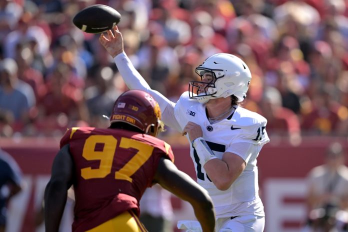 Nittany Lions quarterback Drew Allar has completed 70.5 percent of his passes and is averaging 248.7 yards per game, with 11 touchdowns and four interceptions.
