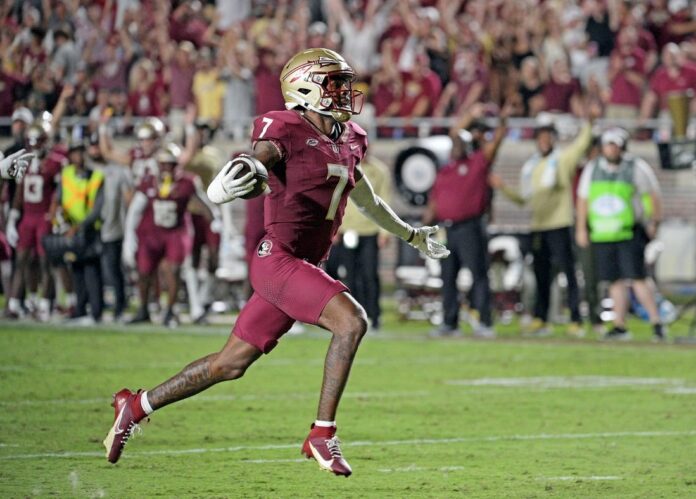 Florida State added two more touchdowns in the fourth quarter, including a 40-yard run by Caziah Holmes with 11 minutes remaining.