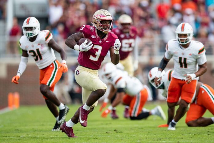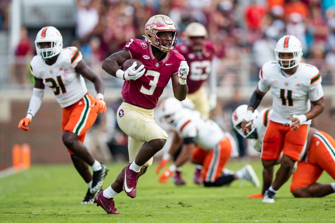 Trey Benson ran for two touchdowns — including the go-ahead 38-yarder in the third quarter — as No. 4 Florida State defeated visiting Miami 27-20 in Tallahassee, Fla., on Saturday afternoon.