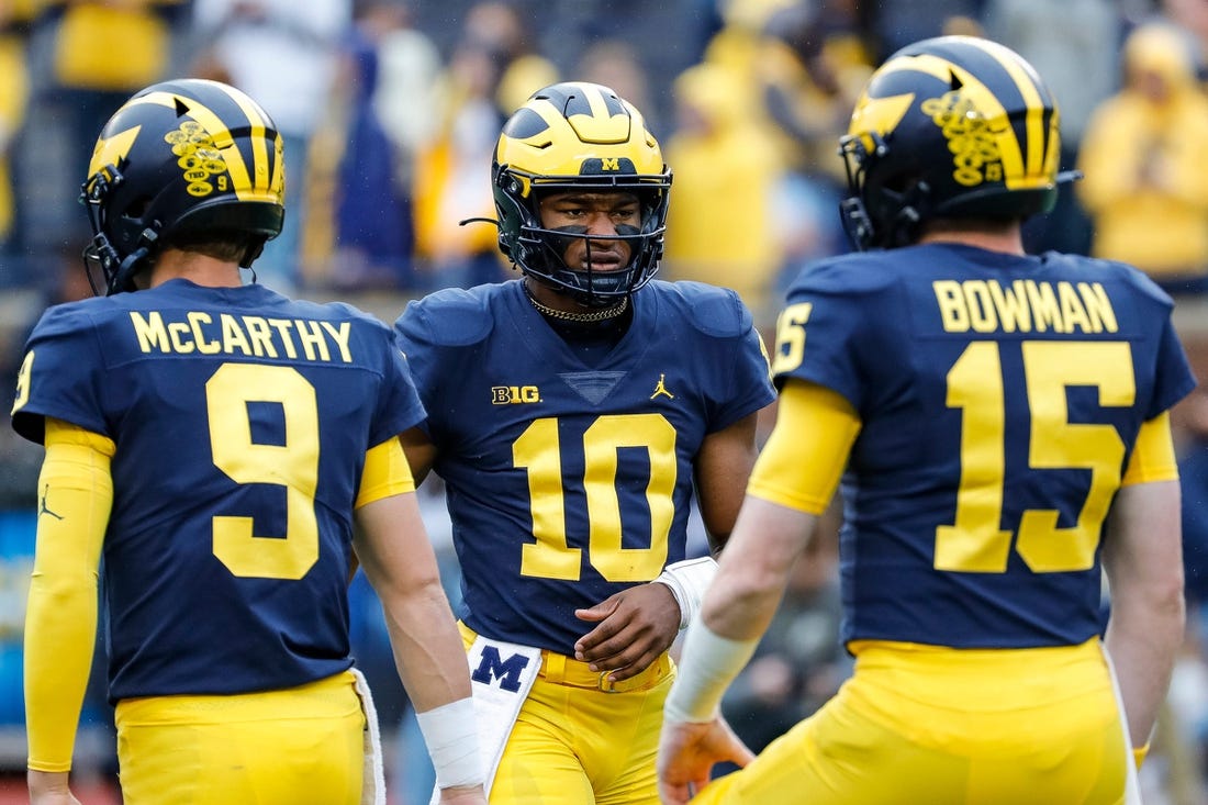 J.J. McCarthy completed 18 of 26 passes for 220 yards and two touchdowns as the Wolverines (4-0, 1-0) subdued the Terrapins (3-1, 0-1), who are 0-27 against ranked conference foes since joining the Big Ten in 2014.