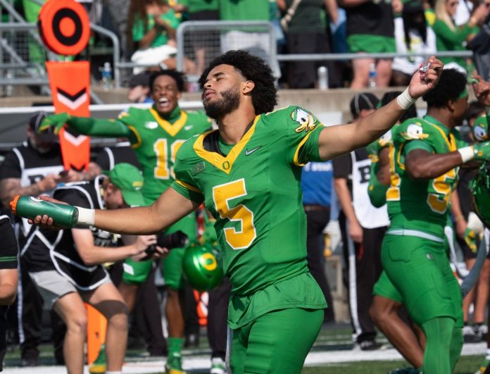 Quarterback Dante Moore appears comfortable behind the wheel of Oregon’s offense with six touchdown passes and zero interceptions. The Ducks have more than 1,100 yards total offense. After his second three-TD game this season, Moore said part of his motivation last Saturday was to show the team had the back of Lanning after Gundy’s comments.