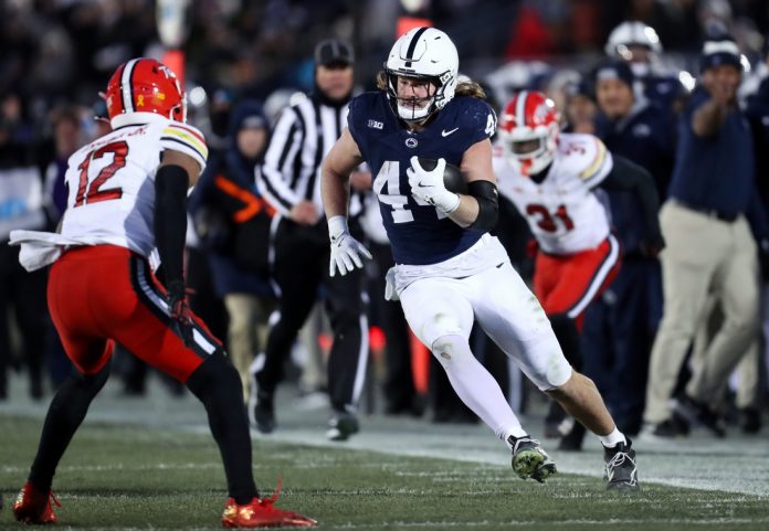Warren set the Big Ten career record for receptions by a tight end with a catch in the first quarter, which was his 15th gain of 20-plus yards in 2024. The same 13-play drive ended with Penn State’s first touchdown of the game, Singleton’s 2-yard plunge off left guard two minutes into the second quarter. Singleton later broke through for an 18-yard score in the fourth quarter.