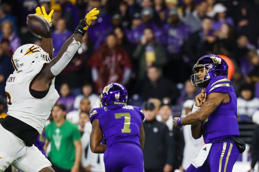 The Sun Devils led 7-3 when Longhetto lined up for a 43-yard field goal in the third quarter. Washington’s Elijah Jackson got his hand on the kick, and it landed short and wide to the left with 3:37 left in the period.