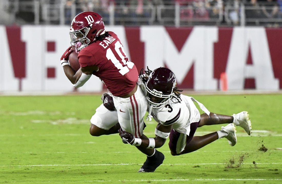 In the first quarter, Young capitalized on a wild scramble, finding time to hit a wide-open Earle for a 31-yard score and a 7-0 lead with 3:57 left. The Crimson Tide ran just nine plays in the opening frame and had 90 yards of offense — just 1 yard rushing.