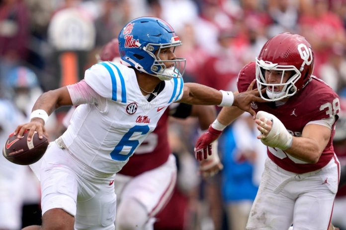 Ole Miss has gotten a good year from Missouri transfer Kewan Lacy, who’s rushed for 696 yards and 12 touchdowns. Five receivers have caught between 19 and 26 passes, with Harrison Wallace III averaging 17.8 yards per catch and Cayden Lee and Dae’Quan Wright each averaging 18.4.