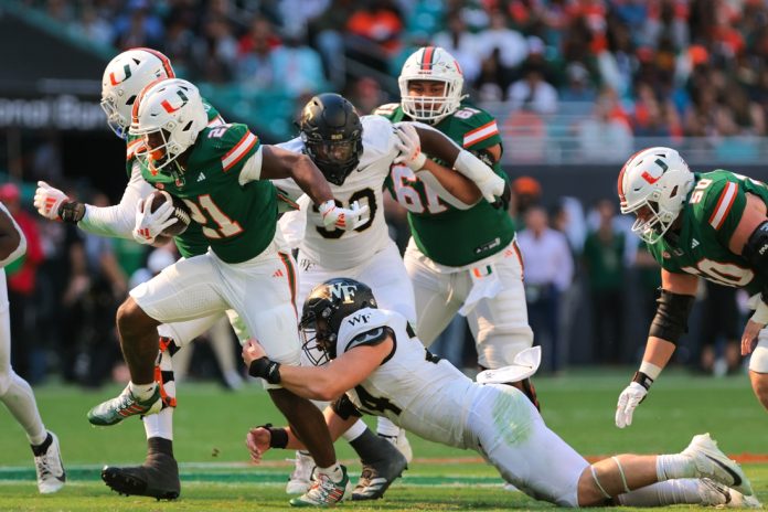 Wake Forest’s defense created an opportunity in the third as Xavier Restrepo fumbled and the ball was recovered by Branson Combs at Miami’s 33. However, Wake Forest was driven back and punted on fourth-and-33.