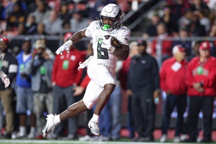 The Ducks’ ground attack, held below 100 yards against Indiana last week, exploded for 415 on Saturday. Noah Whittington led the way with 11 carries for 125 yards and two scores, plus a receiving touchdown, and Jordon Davison ran for 100 yards on just three carries.